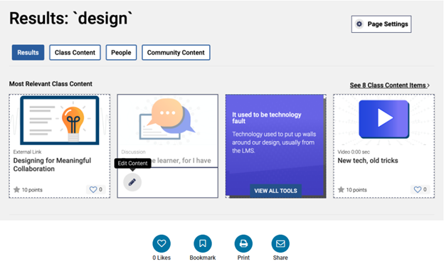 We also added the ability for you to edit tiles directly from the search results page. When you have a lot of content and need to make an update to a tile, you can simply use the class search function to find it, turn on Site Builder with the Magic Wand, and then click the Edit button on the tile.