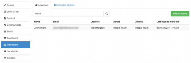 Instructors got some new capabilities this year, too. The “Instructors” section was moved to its own tab in the admin panel and given new capabilities like assigning learners, cohorts, and/or groups to a specific instructor.