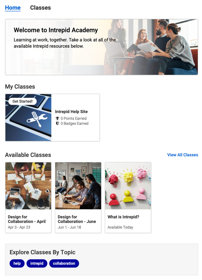 If this is your first year as an Intrepid customer, we welcome you to your first year-in-review. If you’re a long-time Intrepid customer, we thank you for all of your feedback and suggestions to help us continue to transform learning in the workplace. And if you’ve yet to experience the Intrepid platform, we hope you enjoy a glimpse into the customer experience and product capabilities, and we invite you to learn more by contacting a learning advisor who’s ready to help.