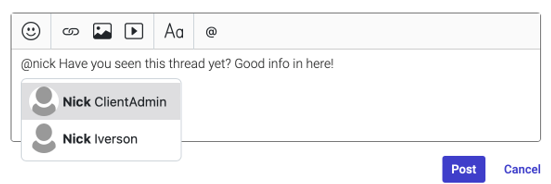 We added the ability to tag people in discussions and comments. This greatly enhances the ability to collaborate with others in your program. For instance, if you want to bring someone else into a conversation, or make sure someone sees a particular post, you can tag them and they’ll get a notification of your post.