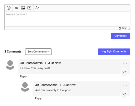 - Highlight Comments – Looking for posts from one particular user or users in a cohort? The new Highlight Comments button will allow you to highlight all comments from a particular user or all of the comments from users in a particular cohort! Just click the button and search for the user or cohort you want to highlight.