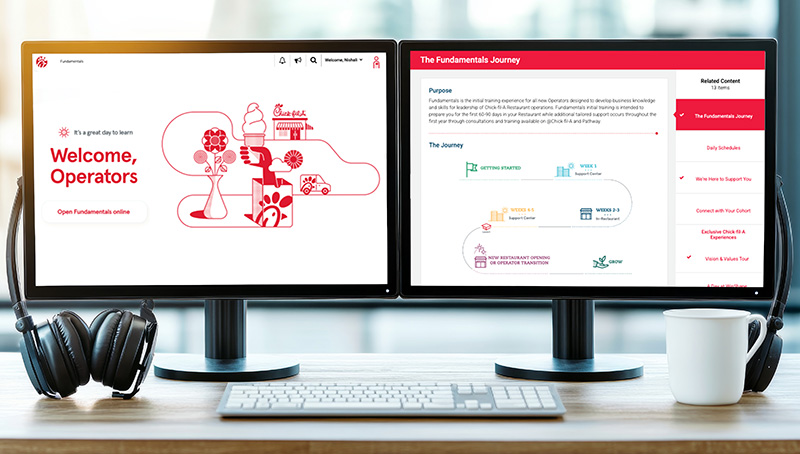 This onboarding experience welcomes new Chick-fil-A restaurant operators and helps them connect to the brand, the culture, and the operational side of leading a restaurant.