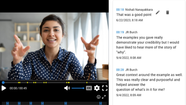 - Video Assignments: Learners practice new skills and receive AI-based feedback, as well as participate in group video projects to engage multiple learners and collaborate with their peers.