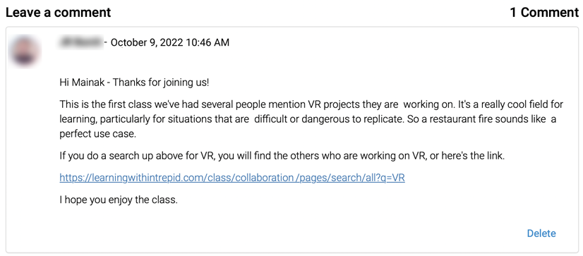 It’s easy to feel like online learning is a set it and forget it type of thing, and parts of it can be. But if you really want to increase engagement in a collaborative learning environment and create a sense of community, then you need an active moderator that’s involved in the training program. This can be done by monitoring discussions and submissions, responding to comments, answering questions, offering feedback, and/or connecting people together.