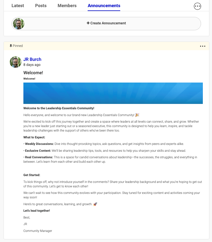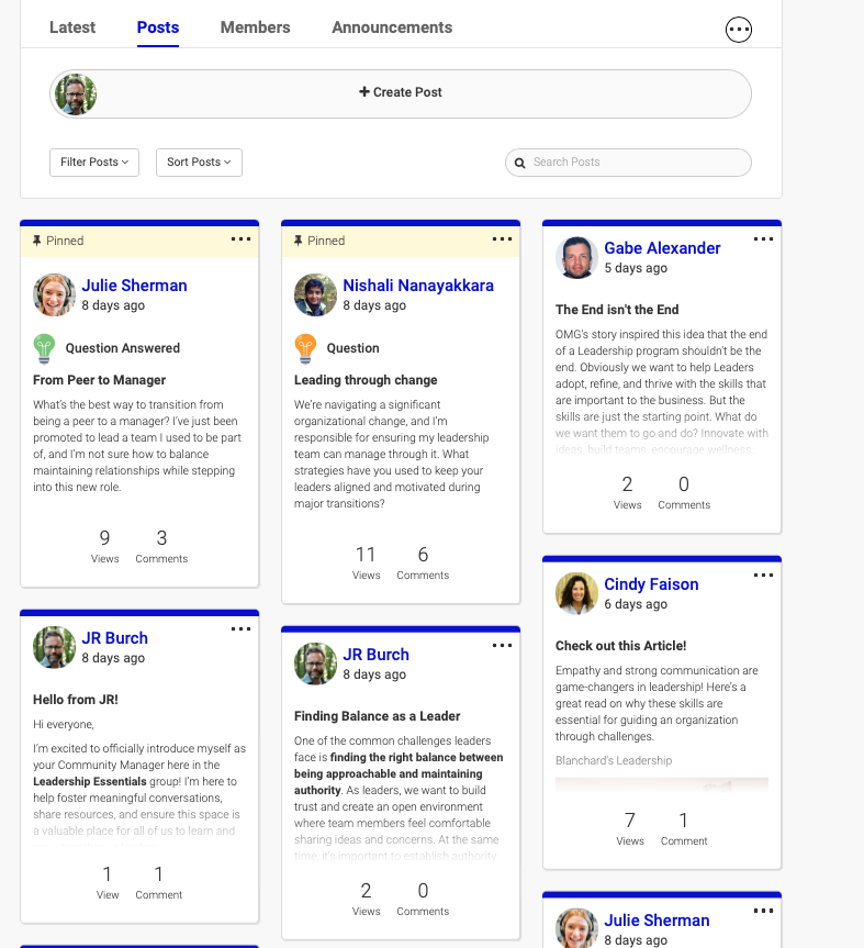 Community Managers can easily manage and curate content, ensuring that key discussions and resources remain visible and accessible by pinning important posts to the top of the page. This role enables them to guide conversations, post announcements, and keep the community organized and relevant to its members.