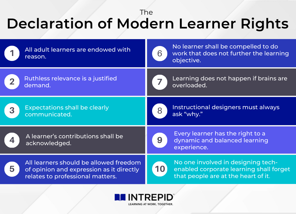 In the evolving learning and development environment in workplace learning, staying aware of cognitive science and effective training theories is essential. The 7th Modern Learner Right is based on cognitive science and is all about not overloading people’s brains. It makes a good pair with Learner Right #10, which is “no one involved in designing tech-enabled corporate learning shall forget that people are at the heart of it.”
