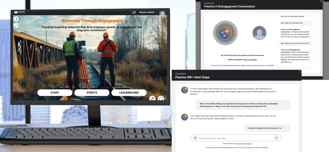 G&W partnered with Intrepid to design and deliver a Retention Through Engagement leadership program, combining leadership education, self-awareness, and practical skill development through cohort-based learning with AI-powered practice. The initiative initially launched as a targeted pilot with nine G&W railroads experiencing higher than average turnover, allowing the organization to focus early efforts where impact was most needed.