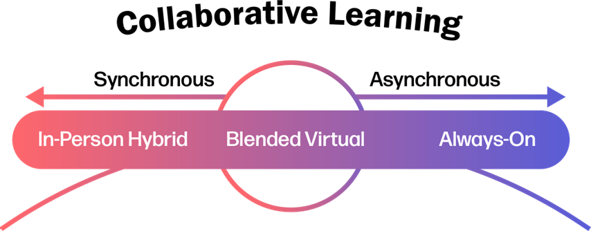 On a spectrum of asynchronous and synchronous learning approaches, collaborative learning offers distinct opportunities and flexibility for delivering a wide scope of engaging experiences. It can bring best of both worlds together and enhance what’s possible: