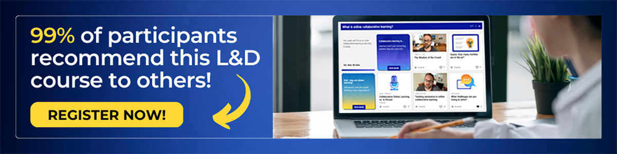 Why’s it important? Collaborative online learning is the modality chosen by BOTH learners and CLOs as the preferred approach for those truly business-critical L&D training topics. It’s proven to improve learner performance, engagement, and business outcomes. (See the research.)