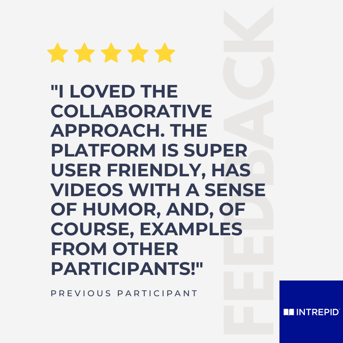 Are you looking for ideas to improve learner engagement? Do you struggle with limited learning and development (L&D) resources? Is it challenging to scale your L&D strategy? If you answered yes to any of these questions, we invite you to join Intrepid’s Design for Collaboration course, a transformative journey for those looking to achieve greater outcomes from their learning experience design.
