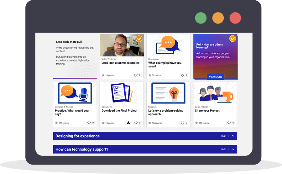 - Combine the flexibility of online learning with the power of virtual instructor-led training for high-value collaboration. Plus, easily keep track of synchronous events within the cohort learning experience.